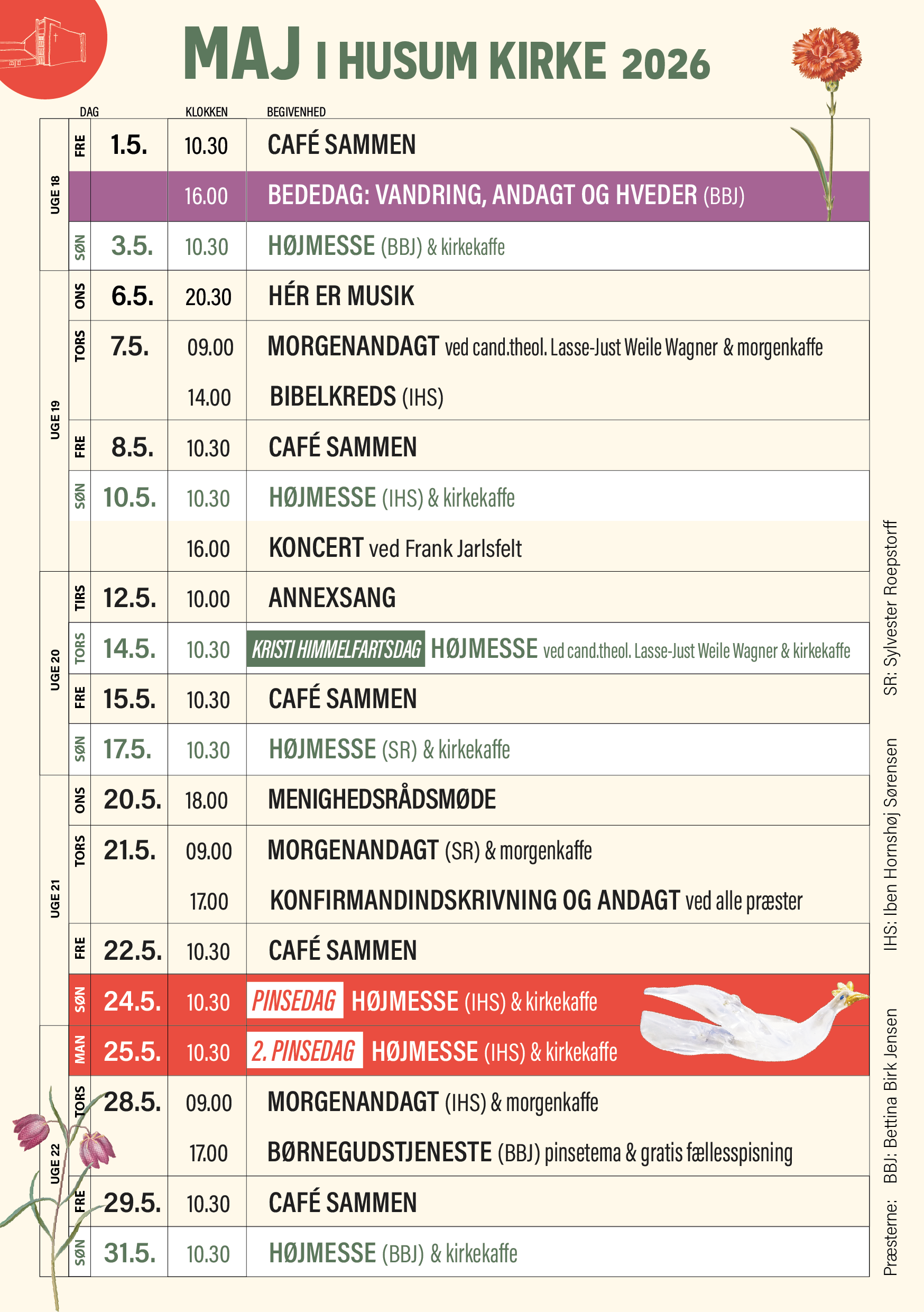 Hver måned udsender vi et nyhedsbrev, hvor I kan læse om, hvad der sker i vores kirke.