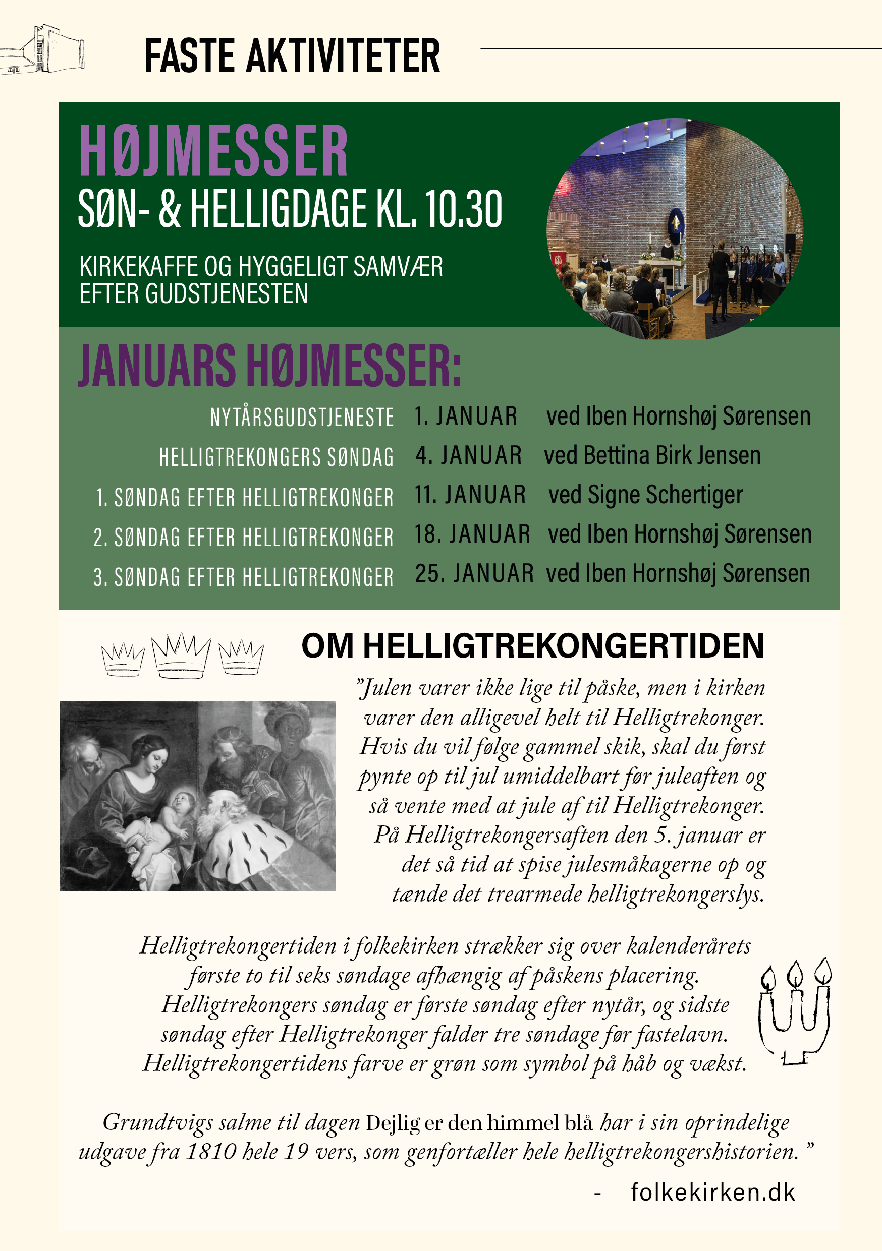 Januarprogram i Husum Kirke 2026, højmesser i januar, info om helligtrekonger -