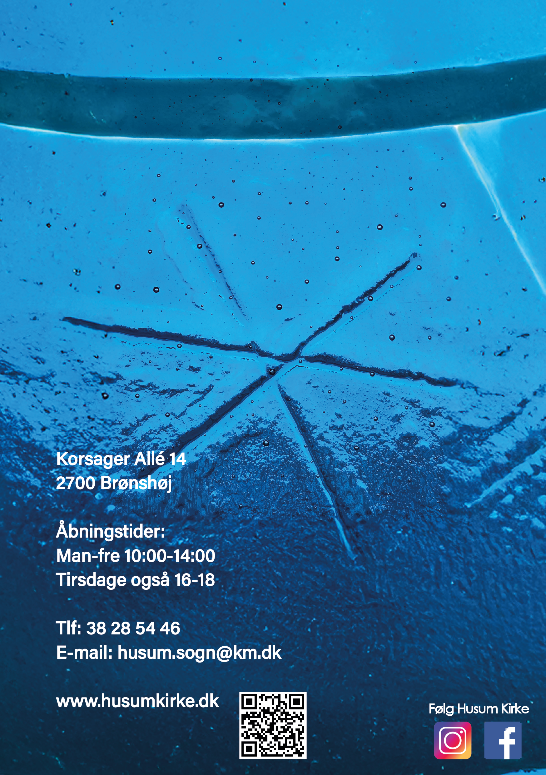 Januarprogram i Husum Kirke 2026 forside, blå mosaik -