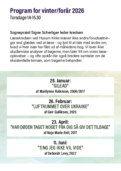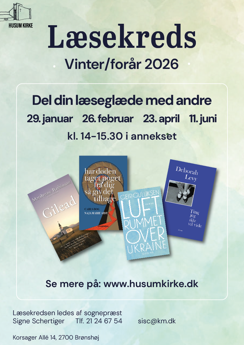 I Husum Kirke mødes vi om litteraturen, filosofien og poesien i vores læsekreds - og her er plads til flere.